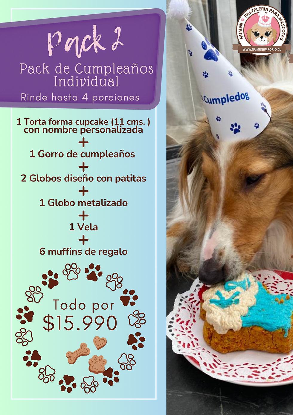 Frosting y relleno sabores pollo, pescado, zanahoria. Vacuno o cordero con costo adicional.